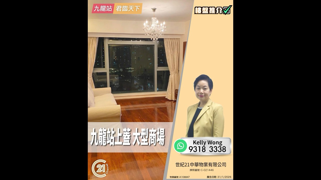 高鐵站上蓋 大型商場 | 九龍站 君臨天下👉🏻 https://url.c21.hk/A108847 九龍站 君臨天下 (租) 實用面積: 743 呎 電話號碼: 📞9318 3338 (Kelly Wong) 世紀21中華物業有限公司 牌照編號: C-021446 物業編號: A108847 廣告日期: 31/1/2026 📲whatsapp查詢:https://url.c21.hk/wts #九龍站 #君臨天下 #圓方 #二手樓盤 #落區睇樓 #一手 #二手 #上車 #租務 #世紀21香港 #世紀21 #C21 #Century21 #21channel #21頻道 #睇樓 #買樓 #租樓 ---------------------------------------------------- 📍設定「搶先看」樓盤資訊即時收看📍 🔎世紀21香港官網 👉 https://c21.hk/ 🖥世紀21香港Facebook👉 https://url.c21.hk/fb 📞聯絡查詢:28697221 🔻讚好🔻訂閱🔻分享🔻LIKE🔻FOLLOW🔻SHARE ---------------------------------------------------- *以上的樓盤資料,由特許經營商提供及擁有,而每辦事處乃獨立擁有及經營(Each CENTURY 21 Office Is Independently Owned and Operated)。由於資料並非實時同步擷取,不確保樓盤廣告能反映樓盤的最新狀態,只僅作參考用途。若有錯漏而引致任何不便及損失,請直接向有關特許經營商或分行查詢,世紀21香港概不負責。
